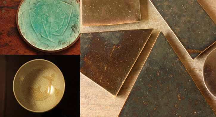 器をはじめ、照明や花器、オブジェなどそれぞれに応じた手法でひとつひとつ手作りをしています。